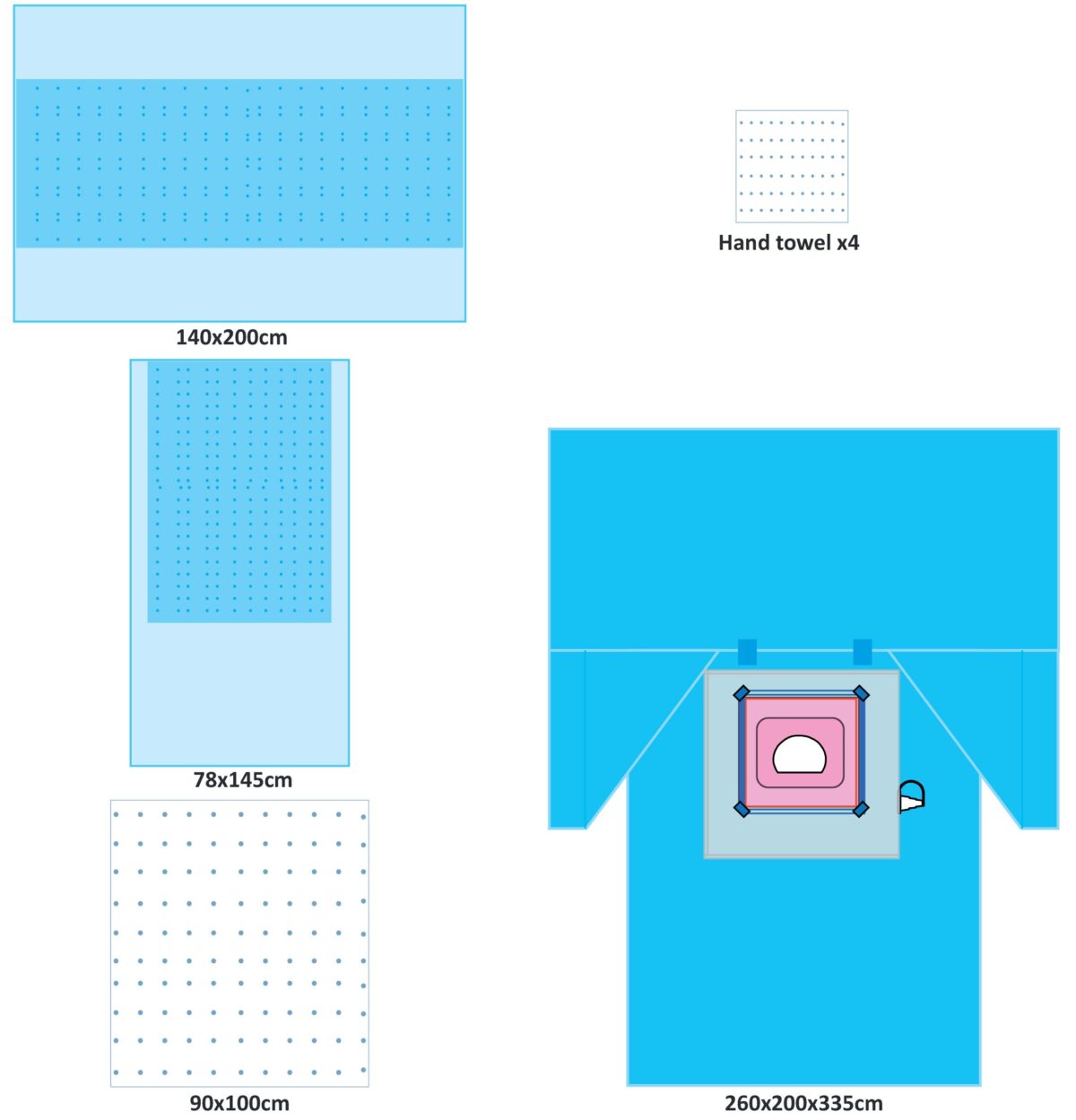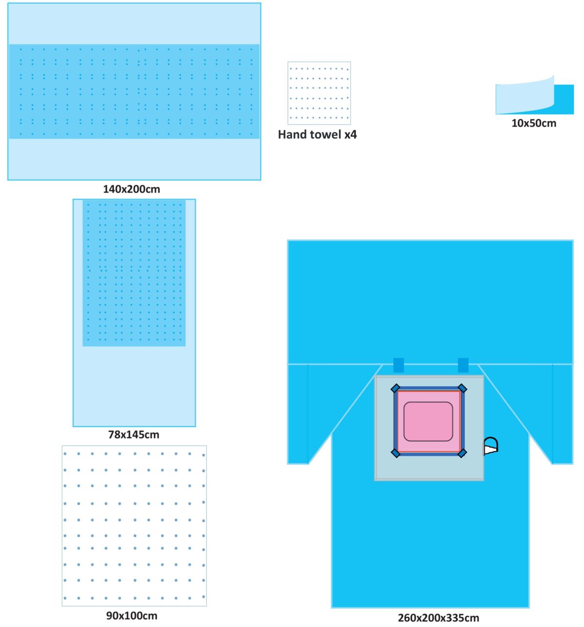 | 1 | Champ césarienne 260x200x335cm avec poche et champ à inciser non ouvert |