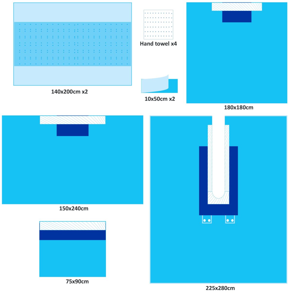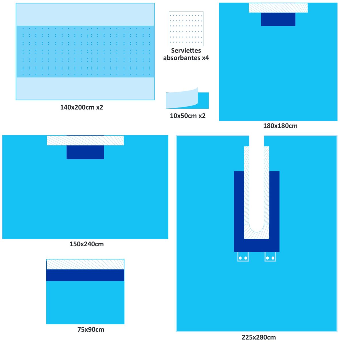 | 1 | Champ en U 225X240cm, U arrondi 10x80cm avec poche d’arthroscopie épaule | |||||